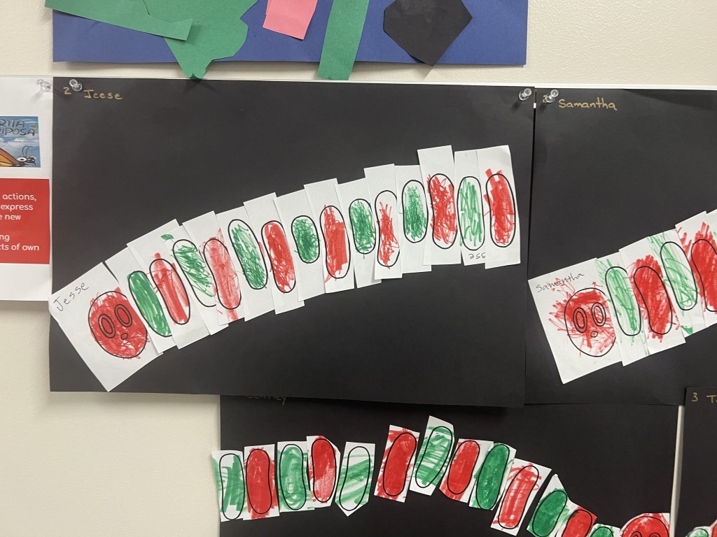 Using markers, scissors, and a glue stick in the creation of our pattern caterpillars was a great task for the beginning of the year.