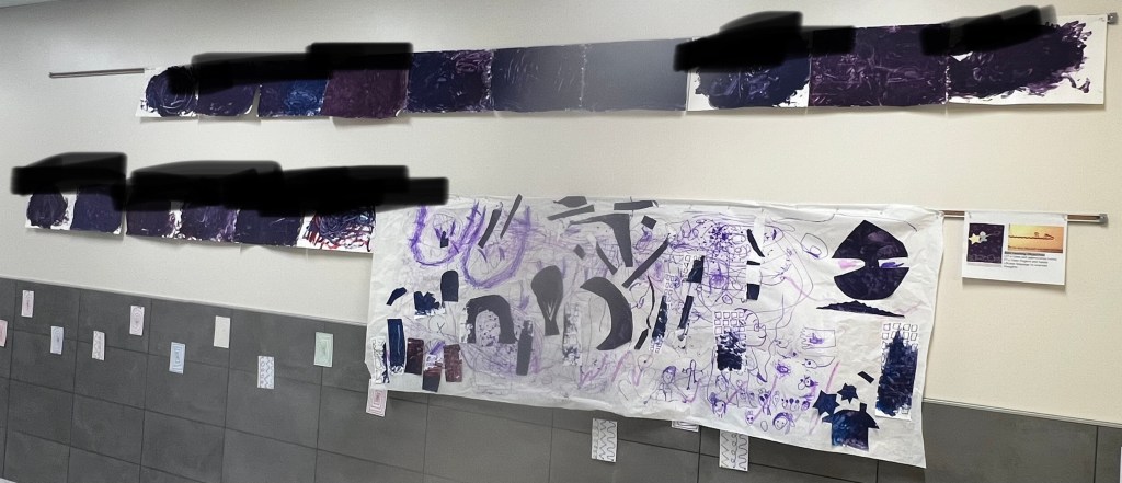 When we finished our mural and our finger paintings were dry, I hung them in the hallway for the community to enjoy. I also made a poster showing the standards we met through this project.