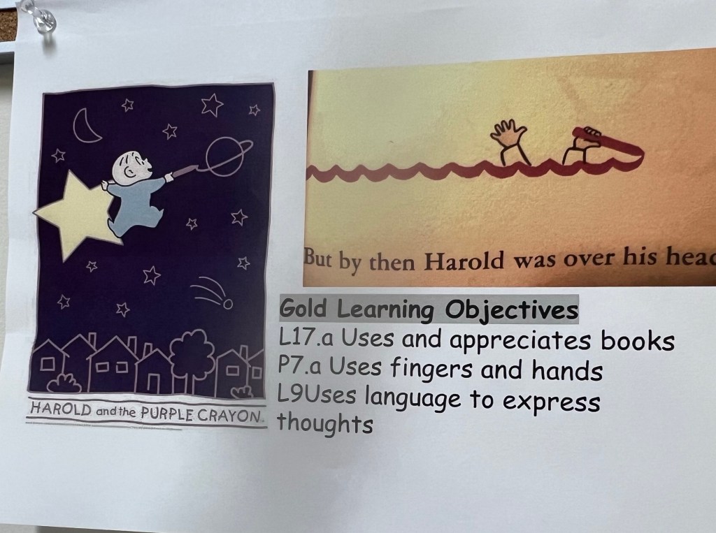 Last week I introduced the timeless classic “Harold and the Purple Crayon” by Crockett Johnson. I loved this book as a child and was delighted to share it with my students.