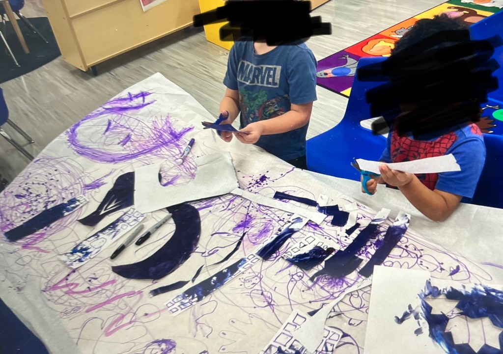 In addition to drawing with a purple marker, students also had the opportunity to finger paint with blue and red. A student asked, “Shouldn’t we use purple like Harold?” I just smiled and said, “Maybe!” You can imagine their delight when they discovered that mixing red and blue makes purple.