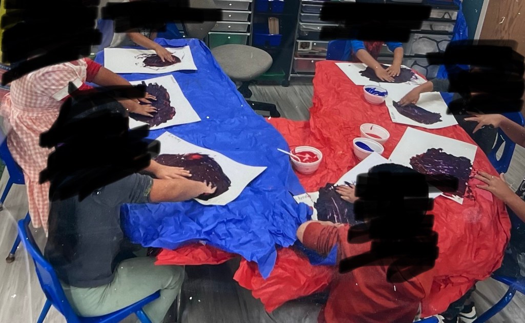 Fingerprinting is so much fun as it’s all about the process! Students are engaged and immersed in playing with paint. It doesn’t really matter what the finished product looks like, it matters that they are exploring paint and color.