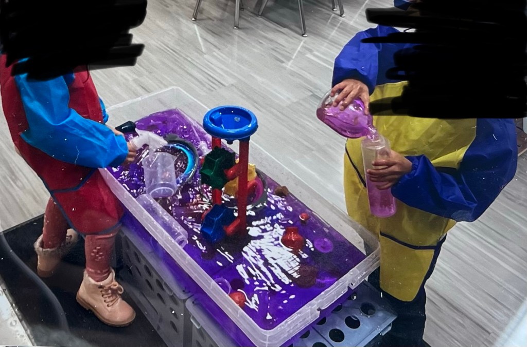I love my classroom water table that I first learned about through Iowa’s “Waterworks” STEM training. I was sad to have to leave my water table in my Iowa classroom, fortunately, many of the items were inexpensive to replace. Each day I fill the water table and make it a different color. Students enjoy coming into the classroom and seeing what color I made the water table each day. Of course, today it was purple!