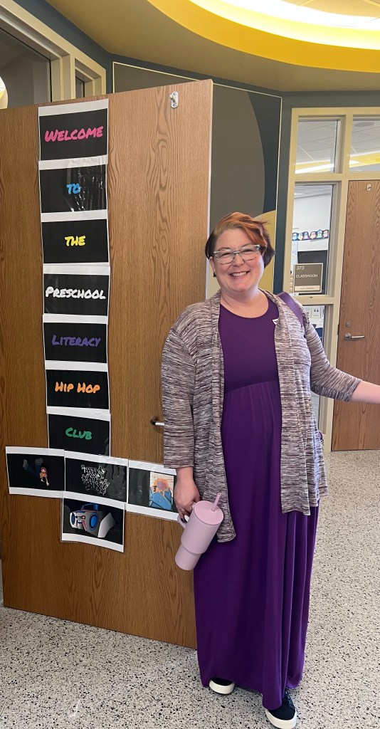 Dr. Schuaib Meachham taught us about hip hop literacy. When I first heard of it, I thought, “There’s no way my preschool students could do this!” One of my instructors, Marissa Schweinfurth, shared that I could adapt it to preschool. She suggested using nursery rhymes or the rules of the classroom as places to start. I began to see hip hop literacy as something preschool students could do.