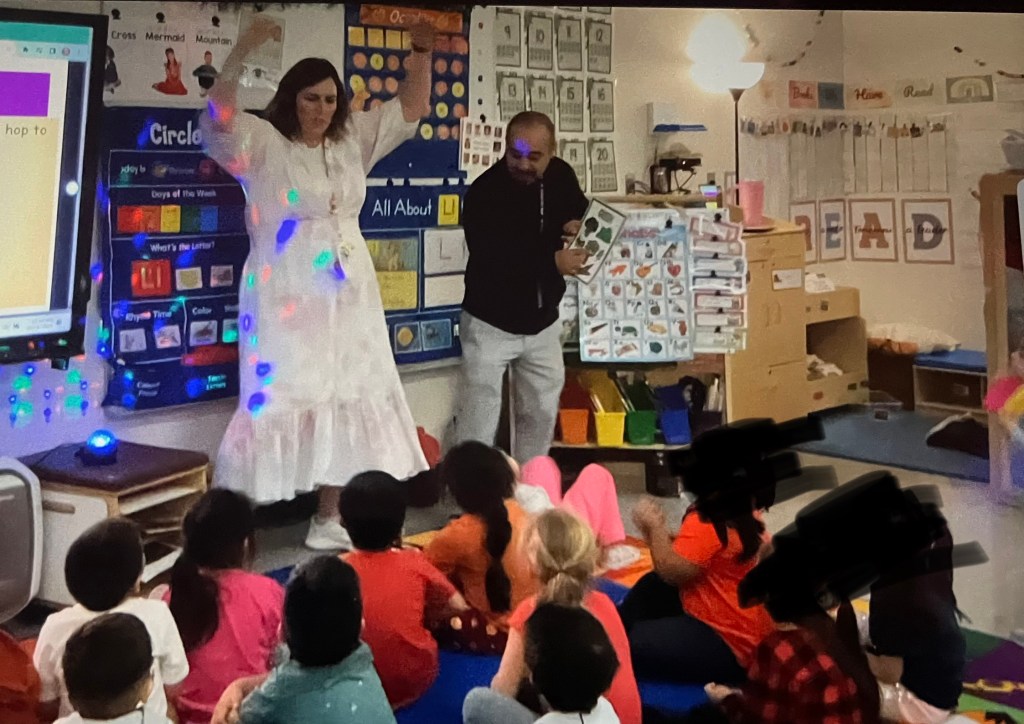 After dancing, it was time to get writing! Darcie modeled writing a hip hop song about the color purple and I improved a hip hop song about the color yellow. My coworker Jesus joined our classroom during this lesson and helped me improv a song about the color green. Then, he translated the song in Spanish!