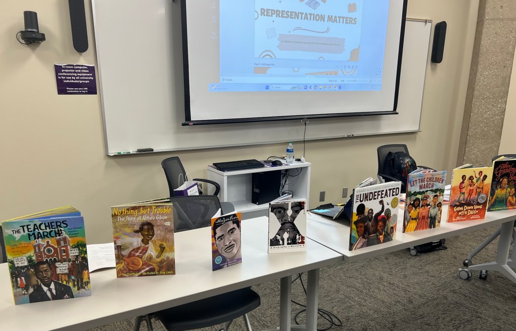 The first session I chose to attend involved representation in literature. Sheritta Stokes, cofounder of the 1619 Freedom School in Waterloo, Iowa and fellow member of the University of Northern Iowa’s Literacy Initiative, was presenting her work helping Waterloo students achieve literacy.
