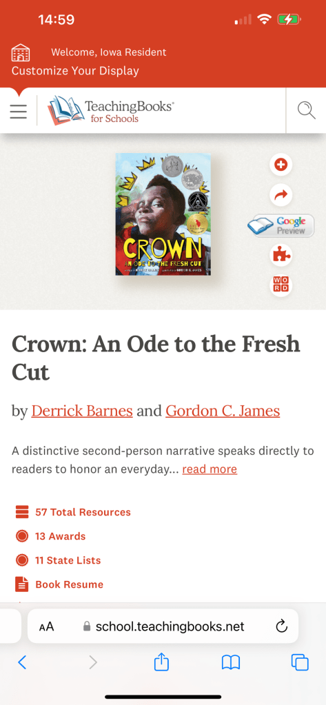 At the 2023 Iowa Reading Conference in Ames, Iowa I attended a session on using the resource “teaching books.net”. The session was overflowing with participants. There was not a chair or table left for myself and a dozen other teachers. So we found a spot on the floor to sit and learn.