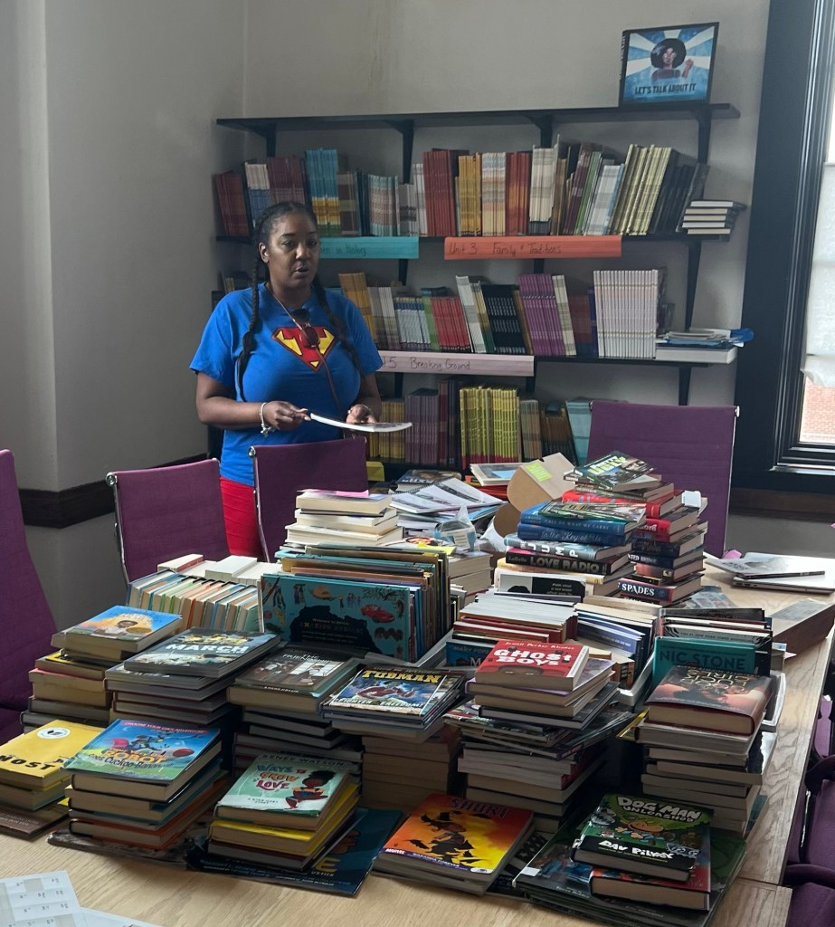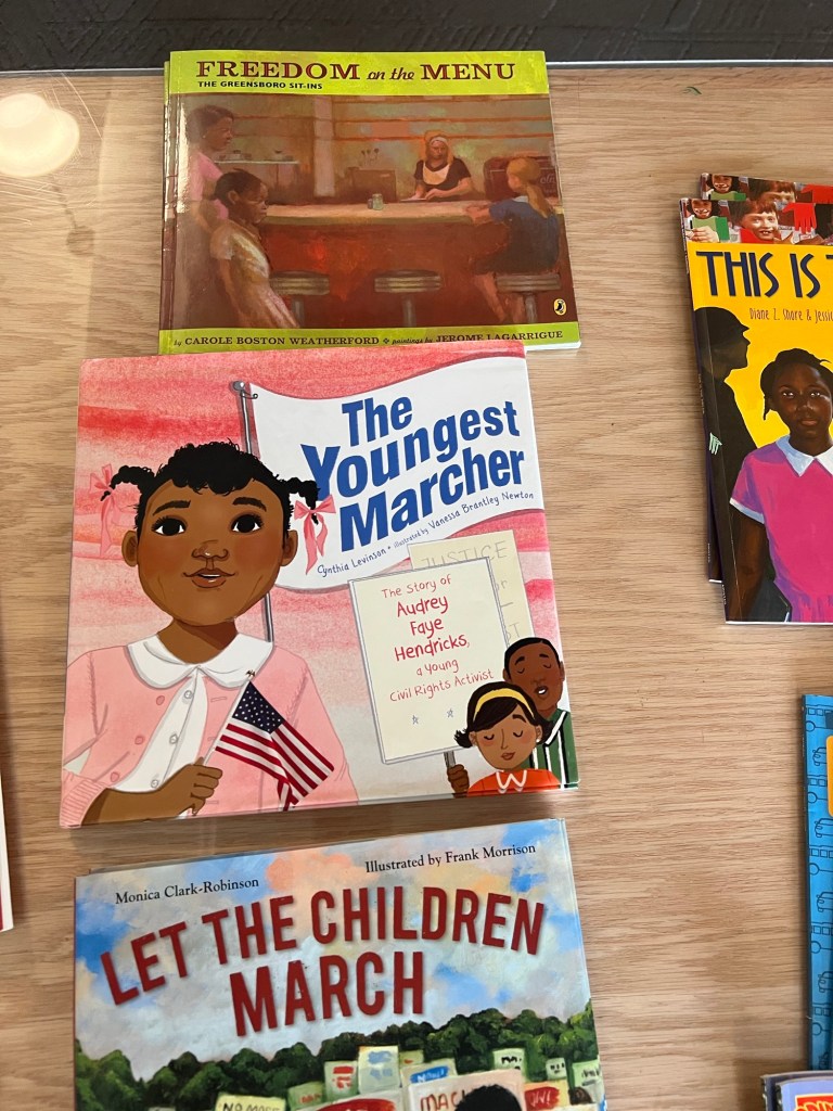 On several long tables displayed at the front of the room were books upon books of diverse titles. These books are all part of the 1619 Freedom School Curriculum. Many of these books I was embarrassed that I’d never seen or heard anything about. A few were familiar. Some were chapter books, others picture books. So many titles. I joined the handful of teachers thumbing through the books and nervously asking Sheritta questions. I asked, “Would the 1619 Freedom School Curriculum ever be shared online?” Sheritta shared that it would (and at the time of this writing, it has!) Sheritta was encouraging and helpful. She seemed to understand that this group of mostly white teachers wanted to improve their craft but felt a little lost navigating the waters of diverse literature alone.